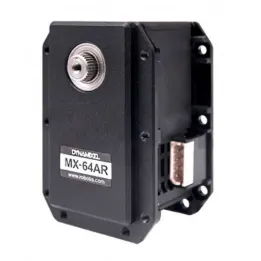 The MX-64AR is a Dynamixel servomotor, with high-level control features and very precise. It is more powerful than the MX-28AR and features the same caracteristics than the MX-64R except for the aluminium case enabling a better heat dissipation.